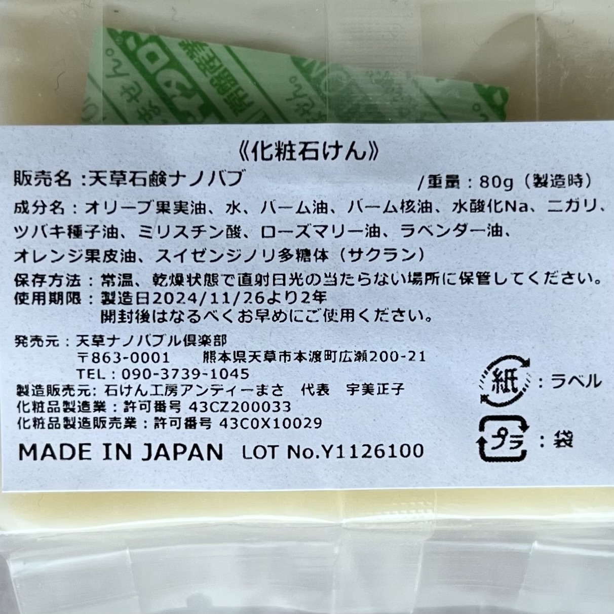 🤍熊本県・天草産の原料(保湿成分としてオリーブ油、椿油、天日水にがりなど)を使用