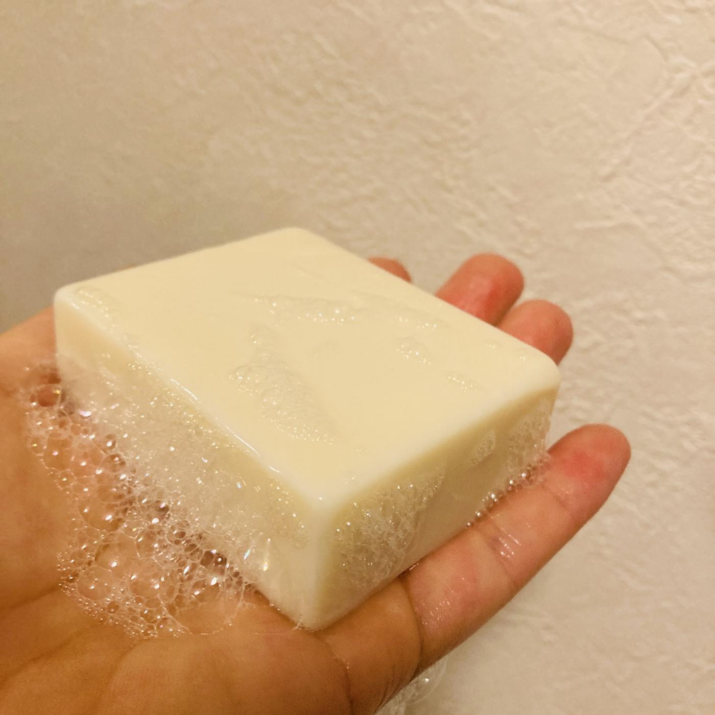 こちら、毎朝の朝晩の洗顔のみではなく、ボディ等にも便利に使える100%無添加のすてきな石鹸です。泡立てネットを使わないでも、申し分ないほどに泡立ちました。手のひらくらいのサイズで扱いやすいサイズの石鹸ですね。