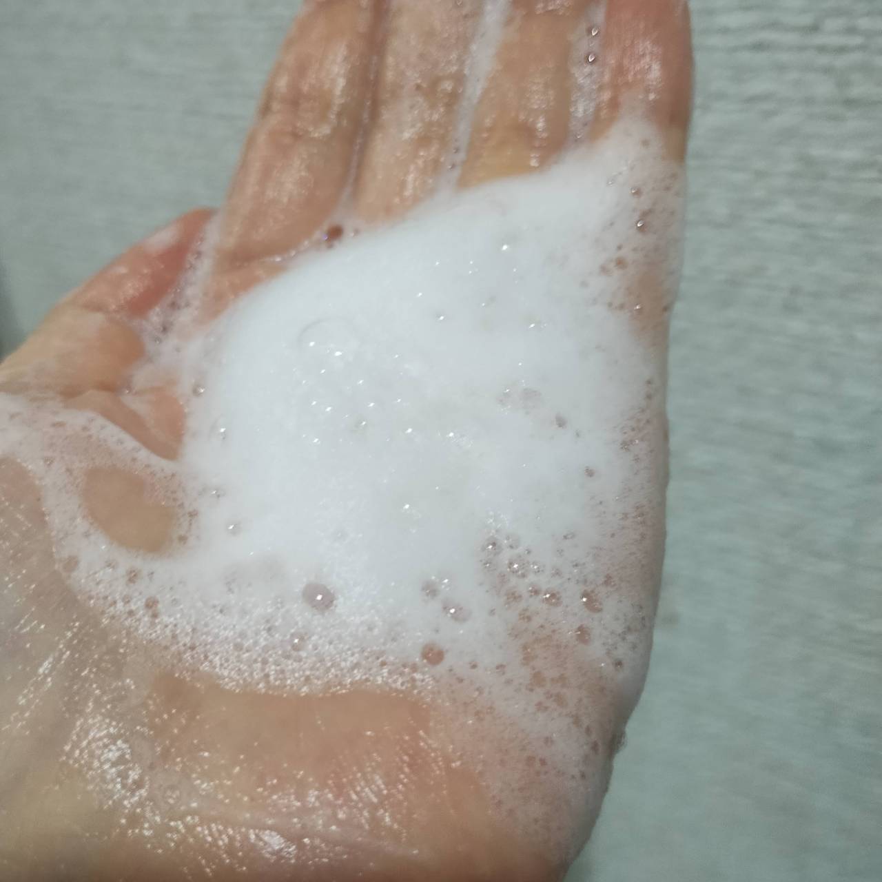 泡立ててみると、泡立ちが早く、マイルドなきめ細かなふんわりとした泡ができました。洗い上りはすべすべで、しっとりとした使い心地。
