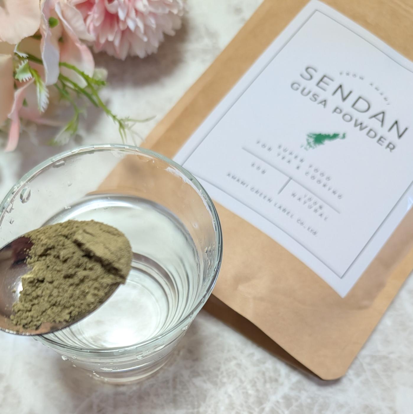 完全無添加で100%センダン草のみを使用していて、農薬や化学肥料を使用していないので安心して摂取出来るなと思います。