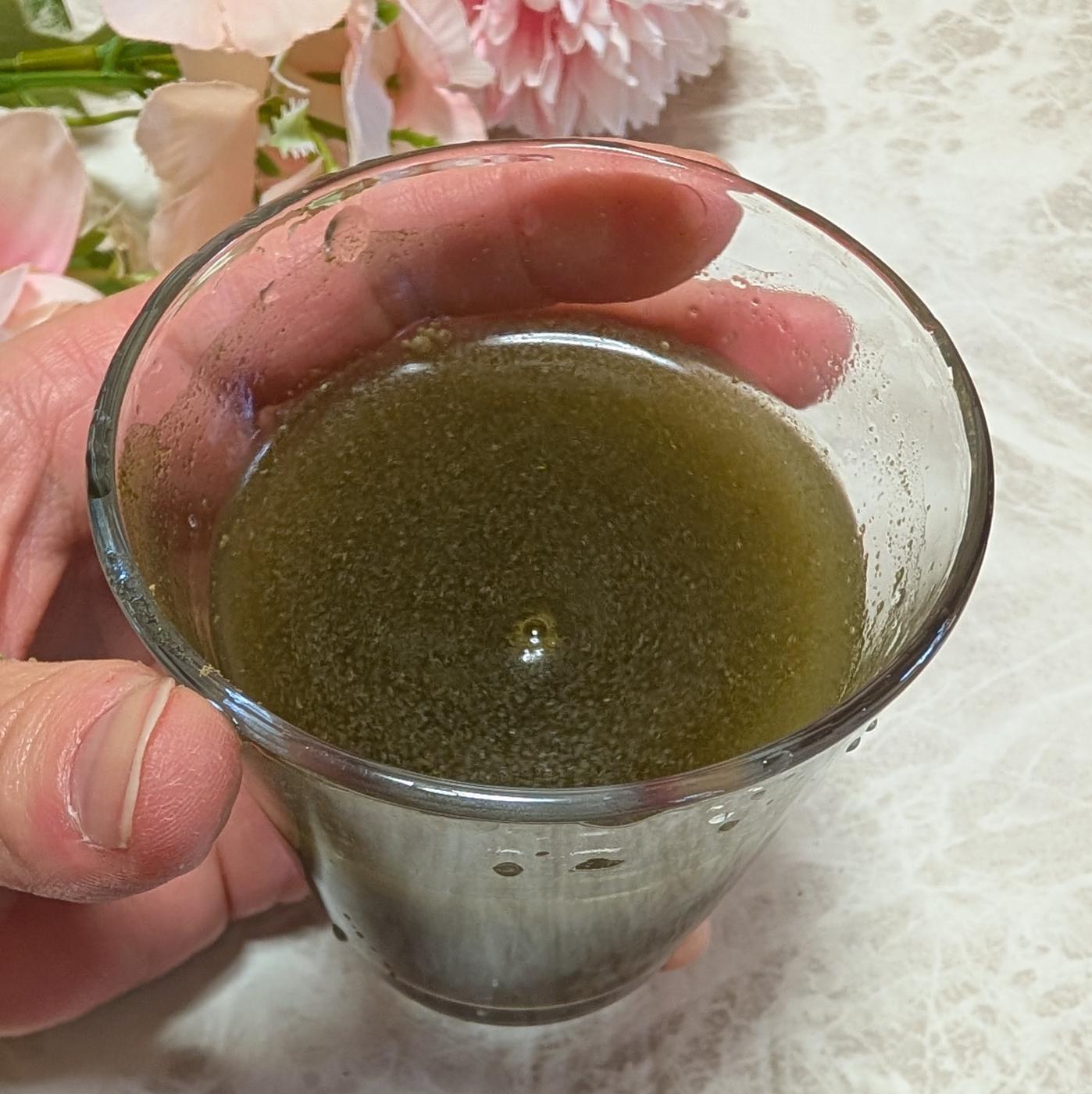 溶かした後も濃いグリーンのようなお色で、少し濃いお茶のような見た目だなと思います。