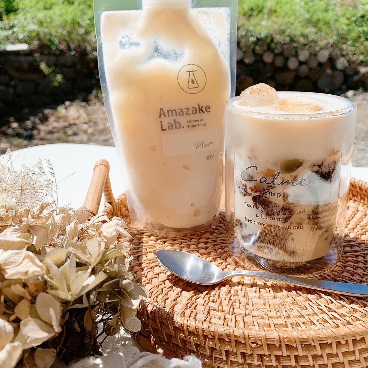 コーヒーゼリーを砂糖なしでつくり、クラッシュしたコーヒーゼリーを器にもり、生こうじあまざけPlainを適量いれ、お好みで豆乳やミルク、わらび餅、きな粉を加えて和風コーヒーゼリーとして頂いてもおいしかったです♪