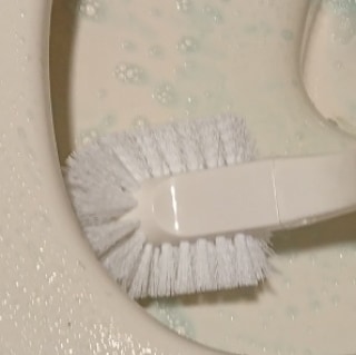 普段は掃除しにくい、ヘリの内側まで届く形状のトイレブラシ。
