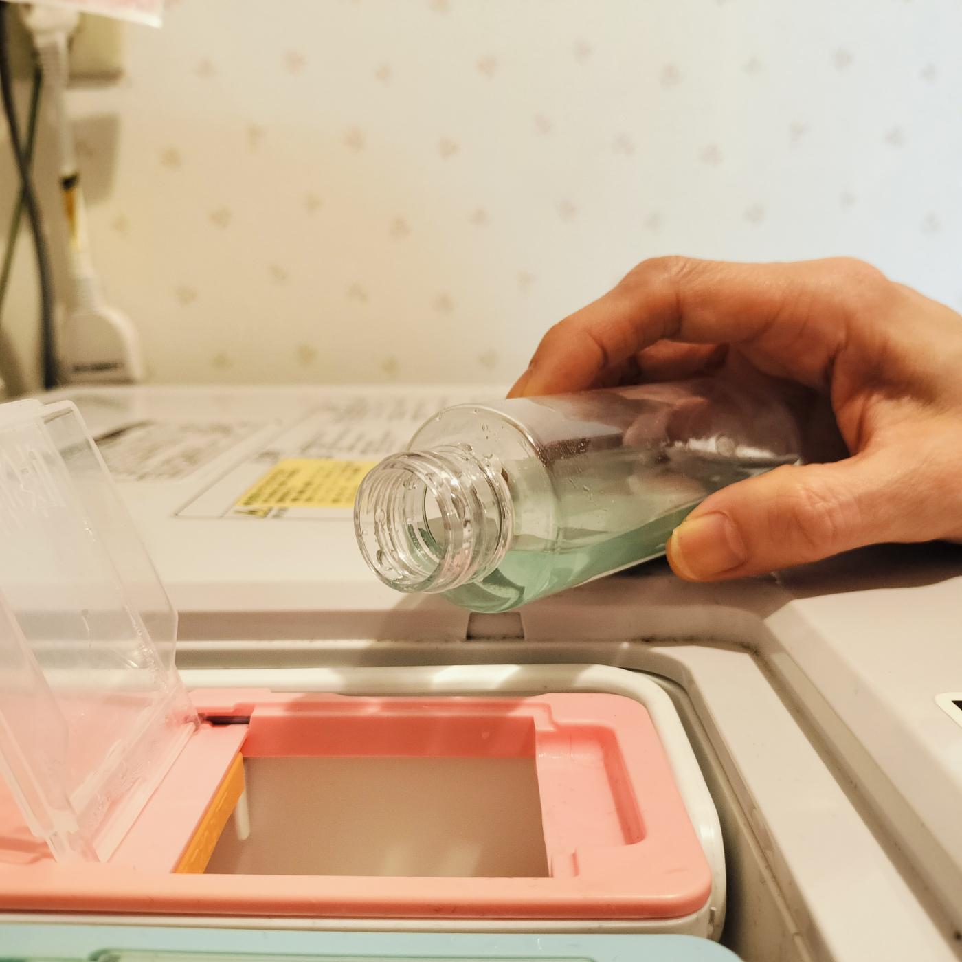 洗濯時に原液(推奨30ml)を柔軟剤投入口に投入するだけ。