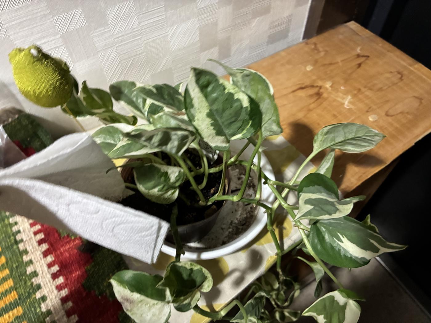少し元気がない観葉植物の土にパラパラとふりかけのようにまいてみました。