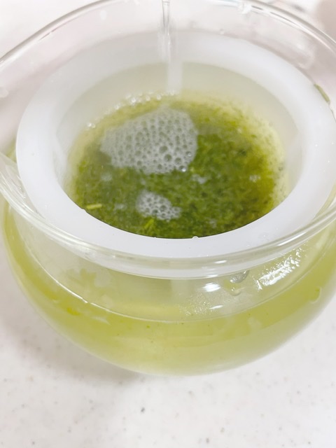 五、二煎目からは徐々にお湯の温度を高くして淹れる。