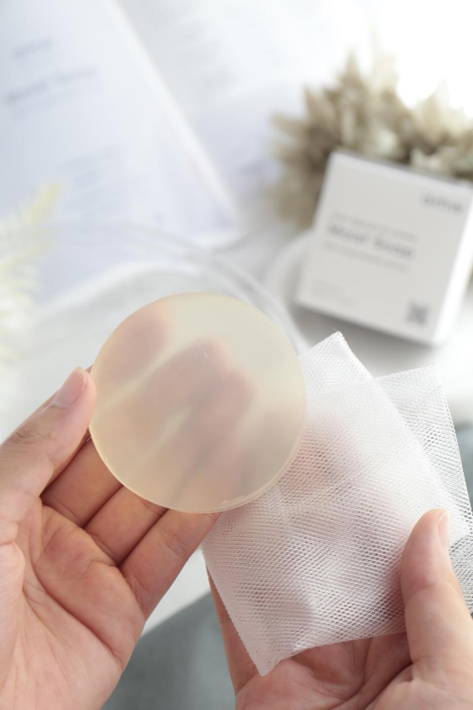 早速箱から取り出してみると、透明感のある綺麗なせっけんと泡立てネットが入っていました🫧
