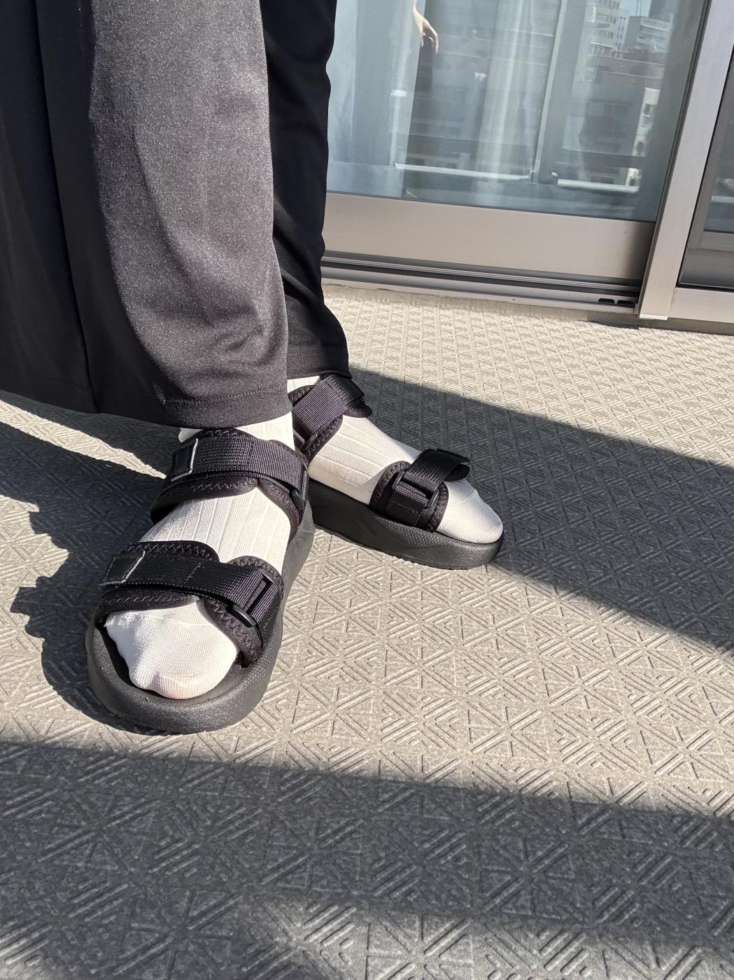 まず驚いたのが、その軽さです。厚底サンダルは「重くて疲れやすい」というイメージがありましたが、こちらはスニーカー感覚、あるいはそれ以上に軽やかに動けます。独自のソールがしっかり衝撃を吸収してくれるので、長時間歩き回っても足裏が痛くなりにくく、外出がとても楽になりました。