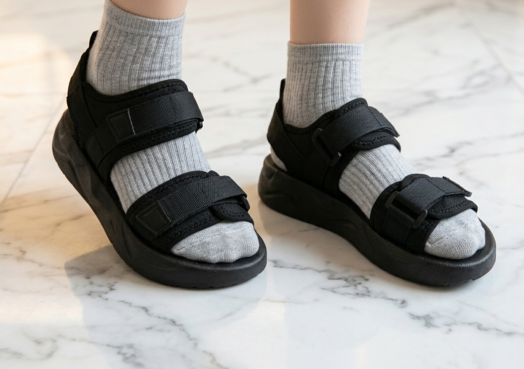 履き心地についてですが、足首と甲部分のダブルストラップ仕様になっており、