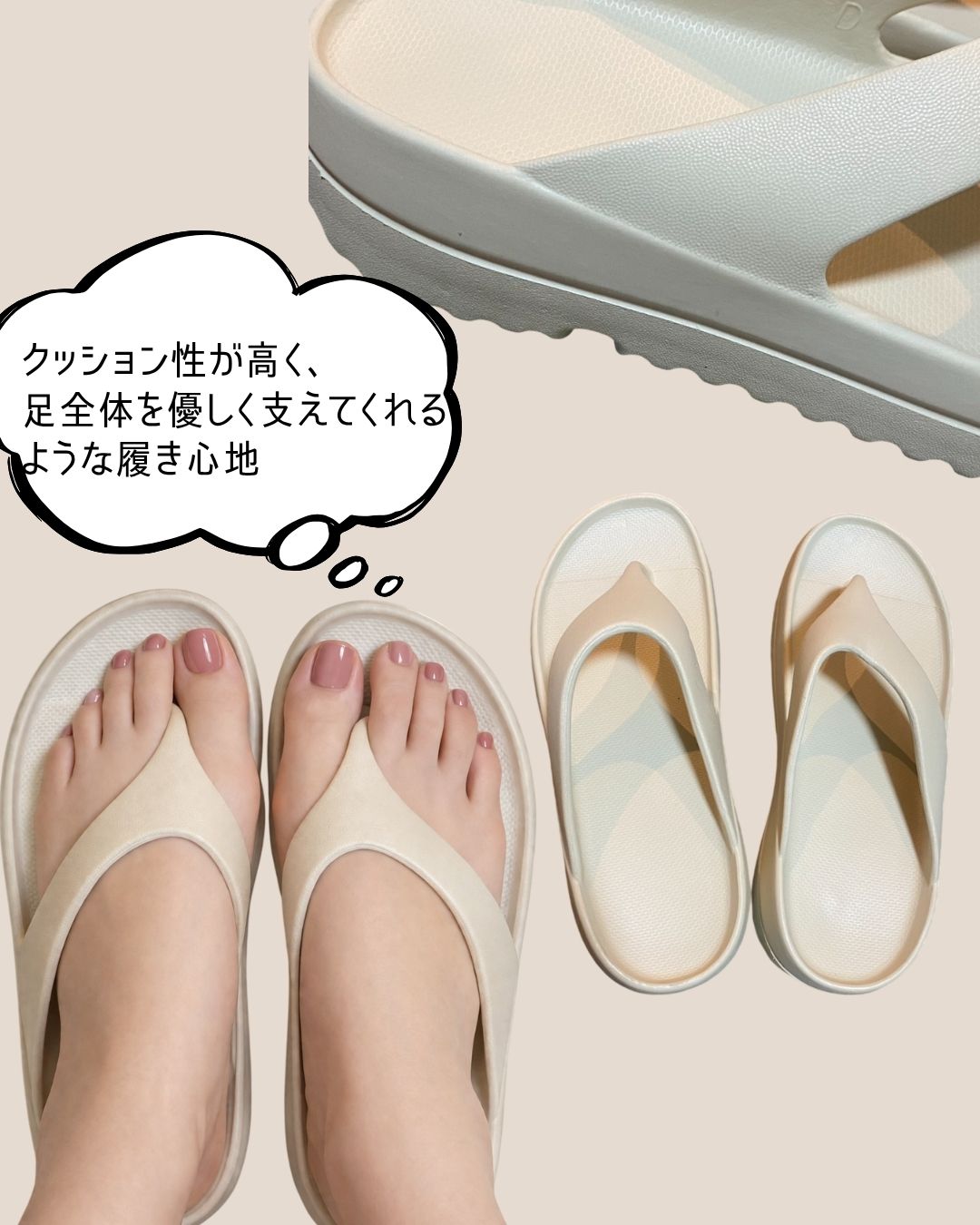 デザインはシンプルでどんなコーデにも合わせやすく、普段使いはもちろん、夏の旅行やレジャーにもぴったり。厚底のおかげでスタイルアップも叶い、カジュアルな服装でもバランスよく見えるのが嬉しいポイントです。