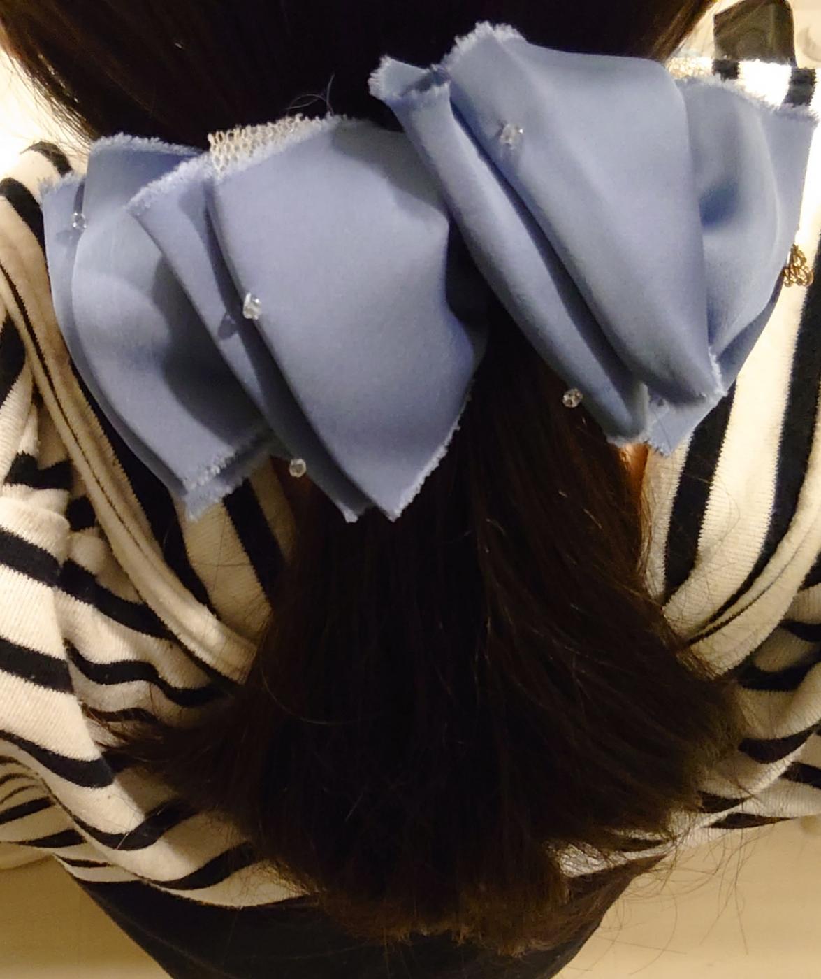 上品で柔らかな印象の光沢感のあるヘアアクセサリーなので、オールシーズン使えると思います。