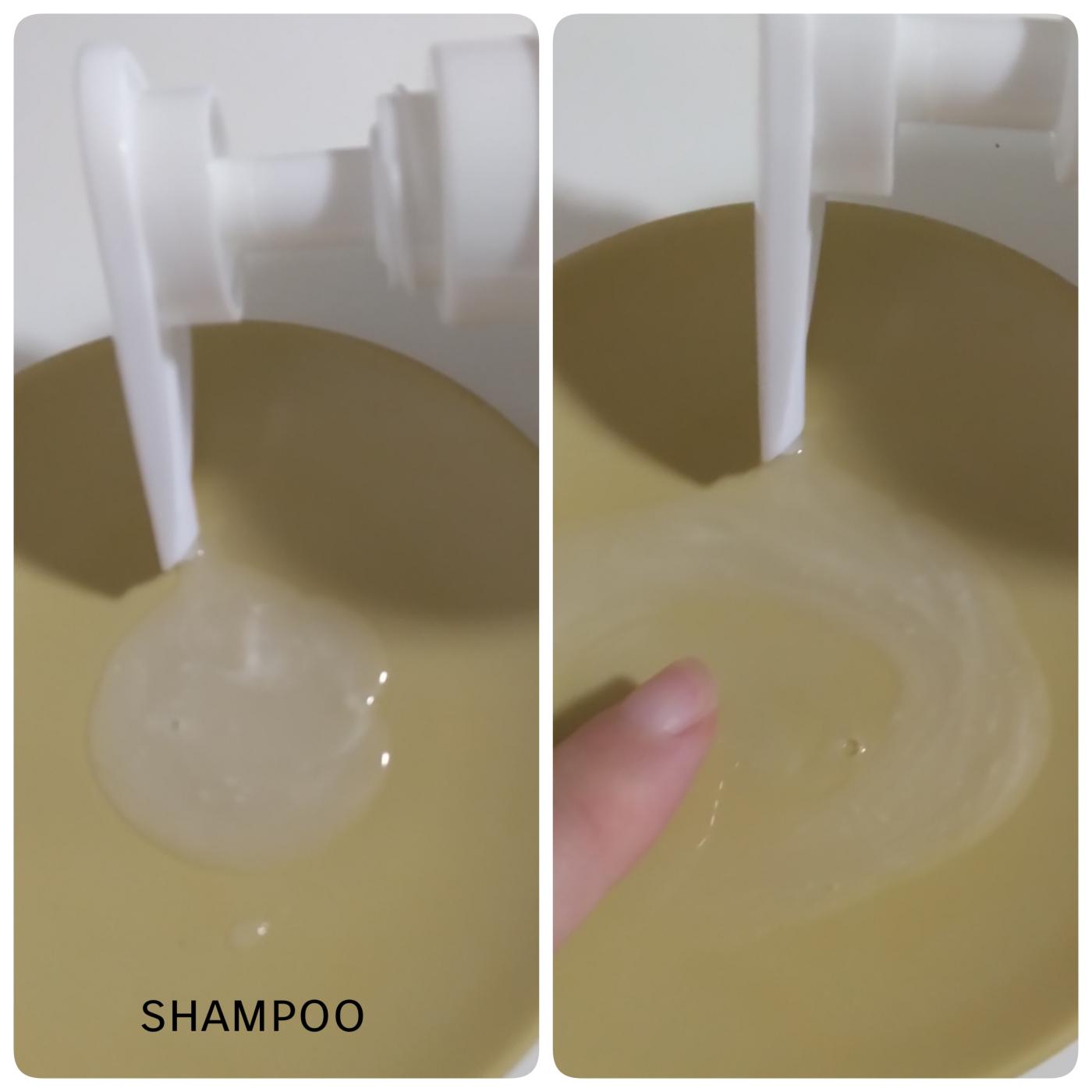 シャンプーは、流れるように柔らかなテクスチャー。泡立ちがよくテクスチャーの粘度は低めなのに密着感のある泡立ち。