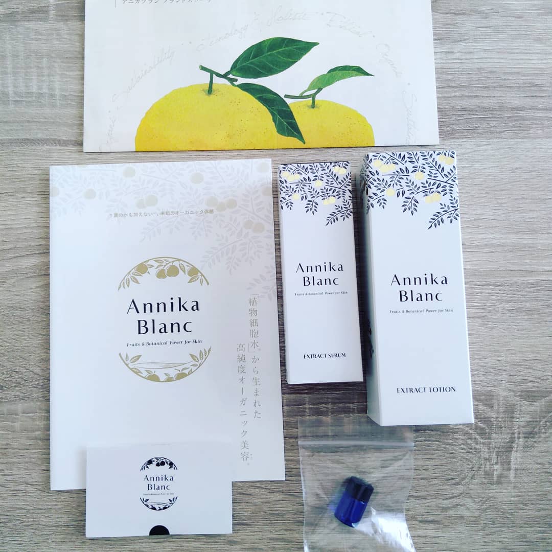 Annika Blanc 愛用中! 化粧水と、美容液のセット使ってる! パッケージもスタイリッシュで、お...