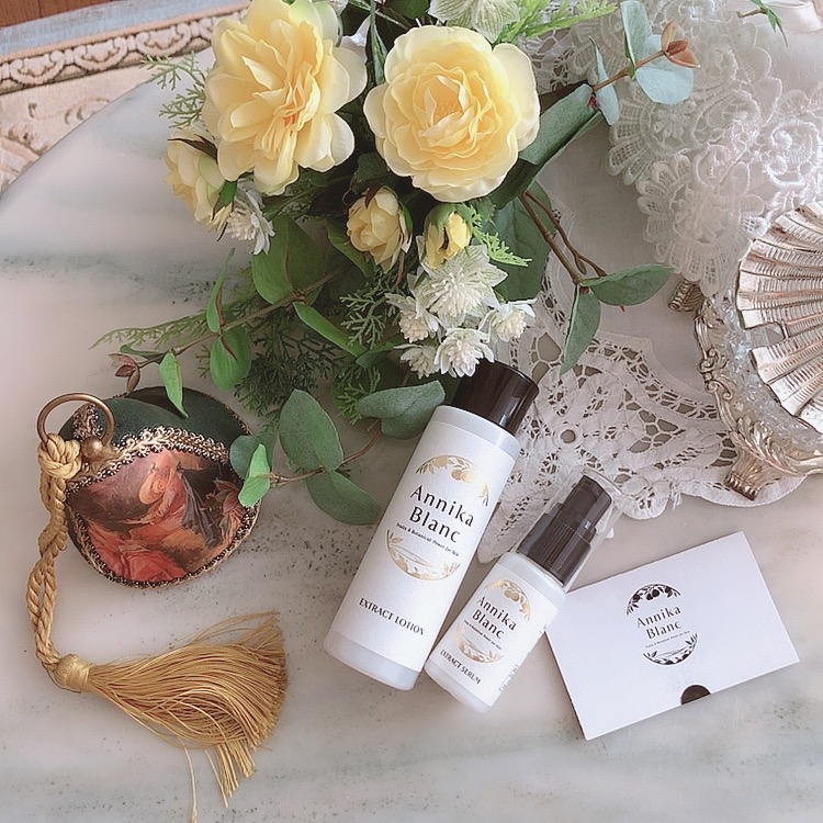 Annika Blanc 愛用中! 化粧水と、美容液のセット使ってる! パッケージもスタイリッシュで、お...
