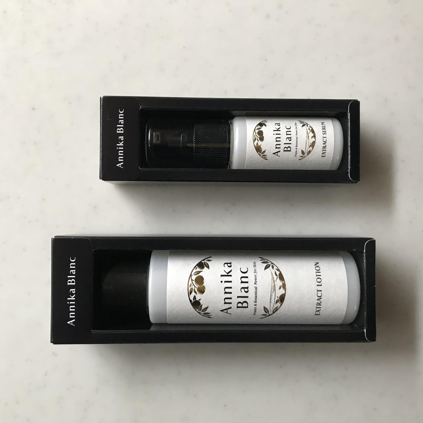 Annika Blanc 愛用中! 化粧水と、美容液のセット使ってる! パッケージもスタイリッシュで、お...