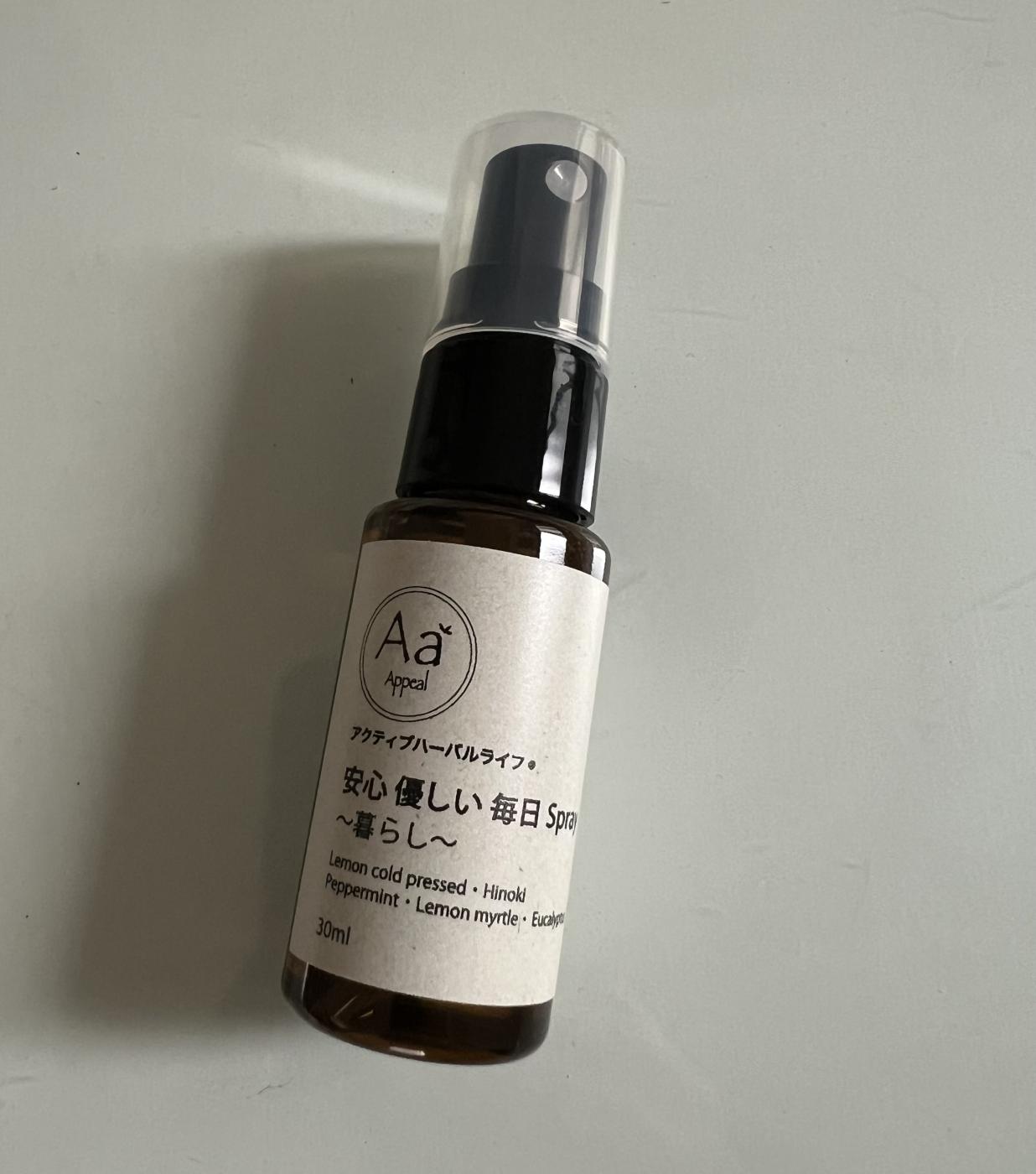 コエタスのモニターキャンペーンで、Appeal(あぴーる)アロマスプレー 優しい毎日Spray ~暮らし~ をいただきました。