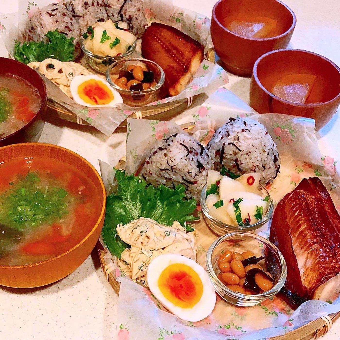 今回も好きなサラダとすりおろしてとろとろ味噌スープにしました。