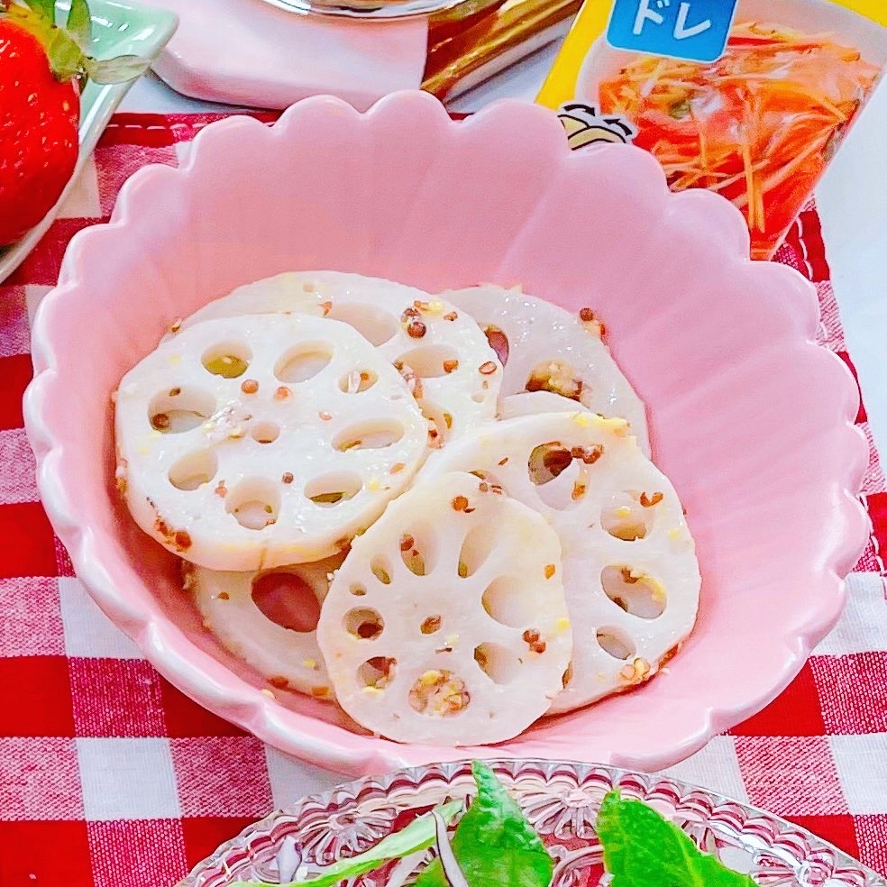 そんな奇跡のれんこん、まずはシンプルに食べたくて、皮をむいて輪切りにしてからオリーブオイルで炒め、粒マスタードとお塩のみで味付けしてみました。
