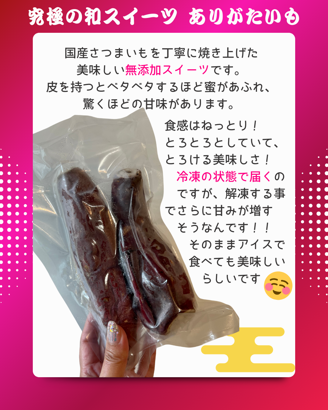 全工程に愛情を込めた、至極の一本をぜひ皆さんもご堪能ください🍠🩷