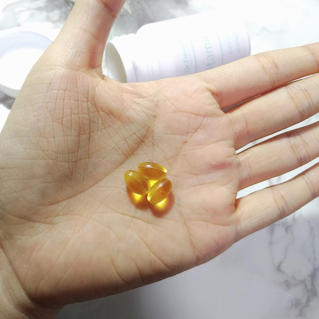 オレンジ色の小さめのカプセルで、1日たった1~2粒飲めばいいので簡単にビタミンDを摂取できます。