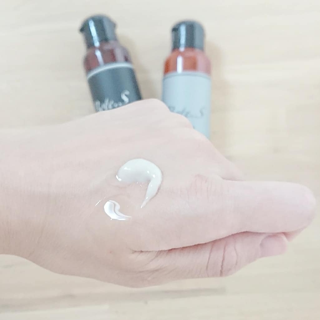 テクスチャーはとろっと流れる液状の黄色がかった透明なシャンプーと、こっくりしたクリーム状で緑がかった白のトリートメント?
