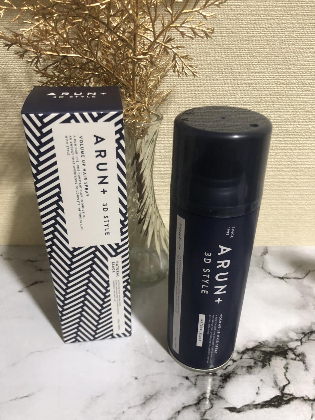ARUN+ 3D STYLE ボリュームアップヘアスプレー ブラック試してみました。 パッケージがネイビーブル...