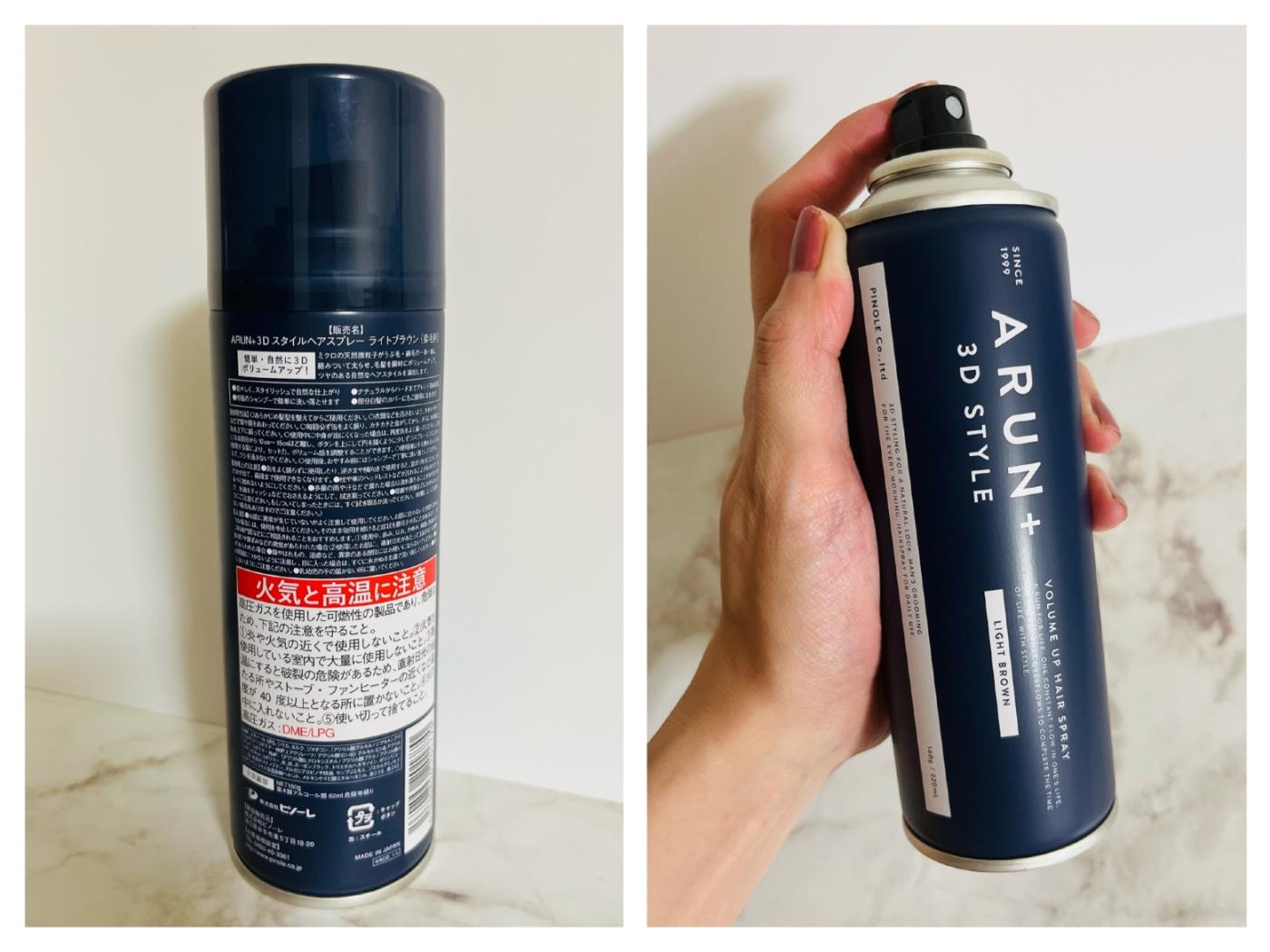 コエタスのモニターキャンペーンでもらった「ARUN+ 3D STYLE ボリュームアップヘアスプレー ライトブラ...