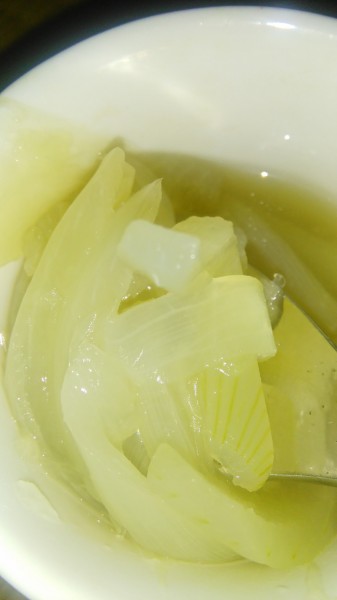 こんかいはたまねぎの味を楽しみたいので味付けはコンソメスープのみ。たまねぎはたくさんいれました。