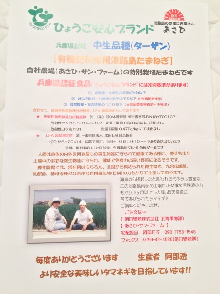 特別栽培・有機肥料使用たまねぎです。