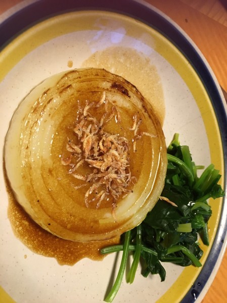 じっくりと焼き、玉ねぎステーキで食べてみました。しっかりと火を通した部分はジュワッと柔らかく、甘みが濃い。