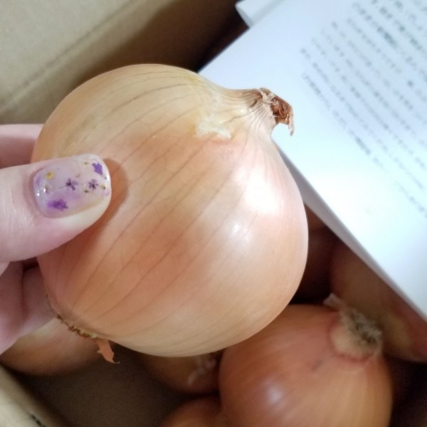 淡路島の玉ねぎは知っていたけれど、品種までは意識したことがありませんでした。今回お試しさせて頂いたのは、なかて品種ターザンという、加熱すると甘くなる玉ねぎ。写真のように大きく綺麗な玉ねぎがいっぱい入っていました。こんなに綺麗な玉ねぎは愛情たっぷり育てられた証ですね。
