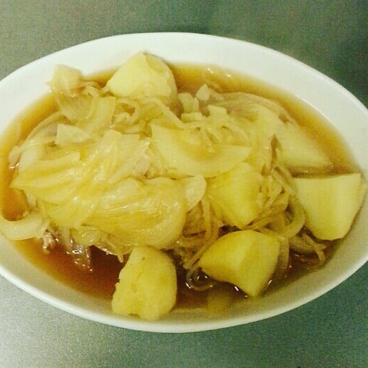 今日は具材があまりなかったので、豚肉少量、玉ねぎ1つ、じゃがいも4つ、糸こんにゃくで作りました。