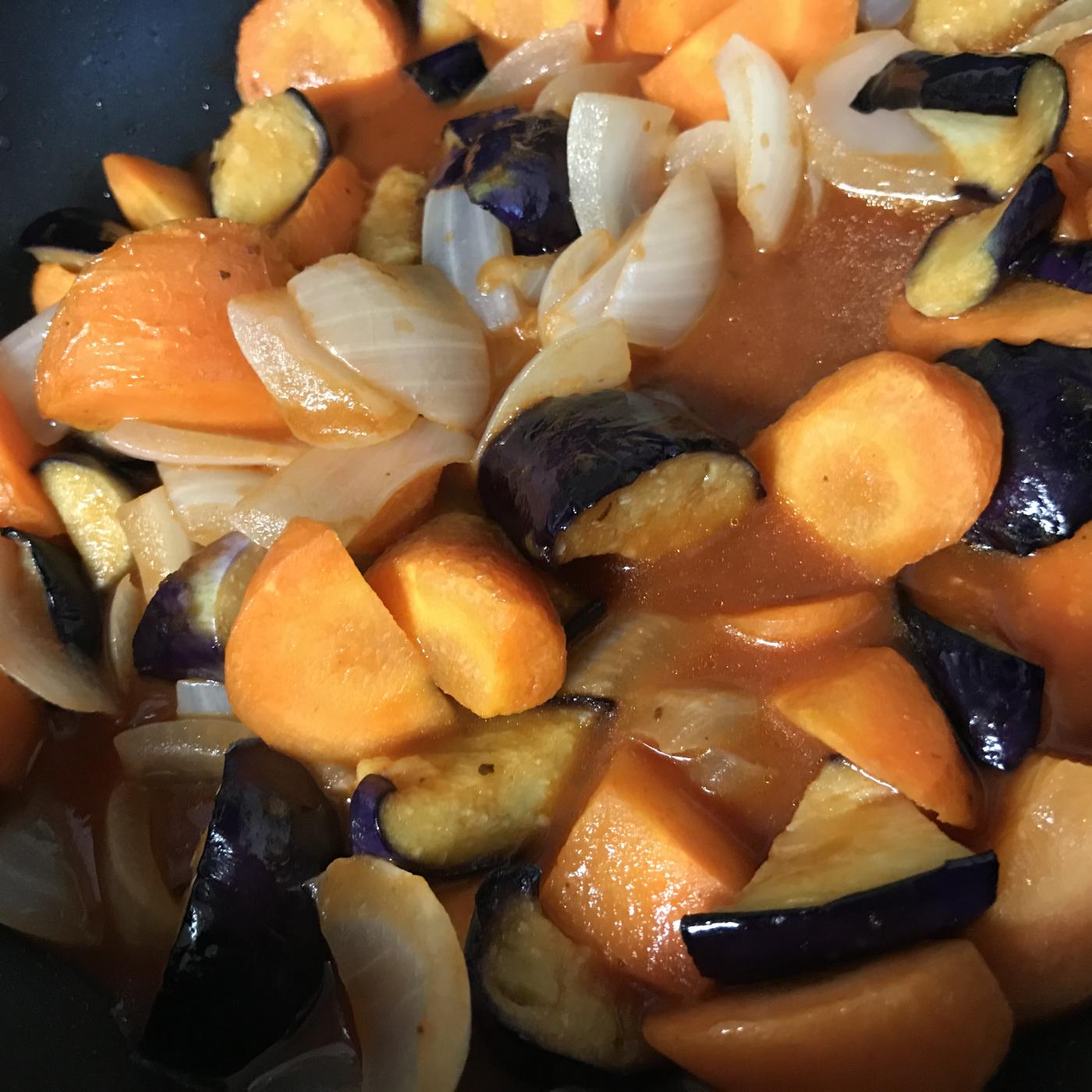 淡路島のタマネギは、普段使用してるのより油で揚げると、甘みが増して、美味しいラタトゥイユに。子どももペロリと完食!