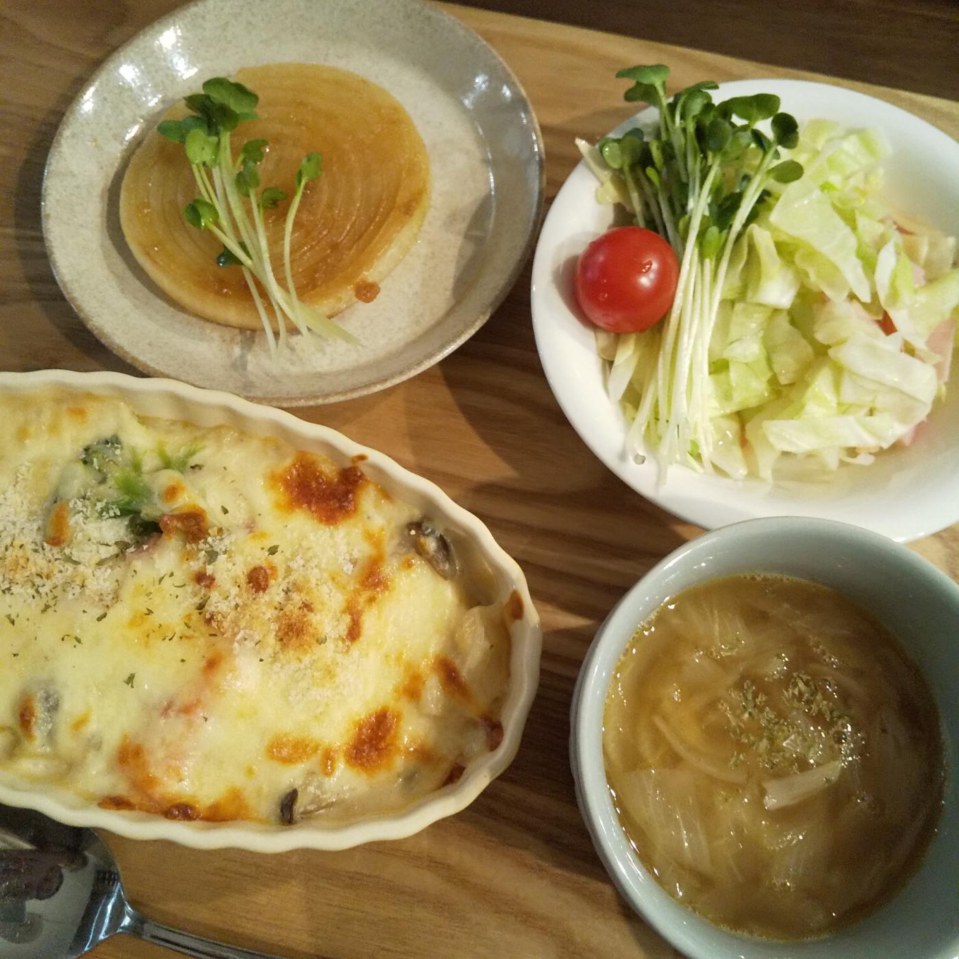 玉ねぎの丸ごとスープ、玉ねぎステーキ、グラタン、オニオンスープ、炒め物・・・!