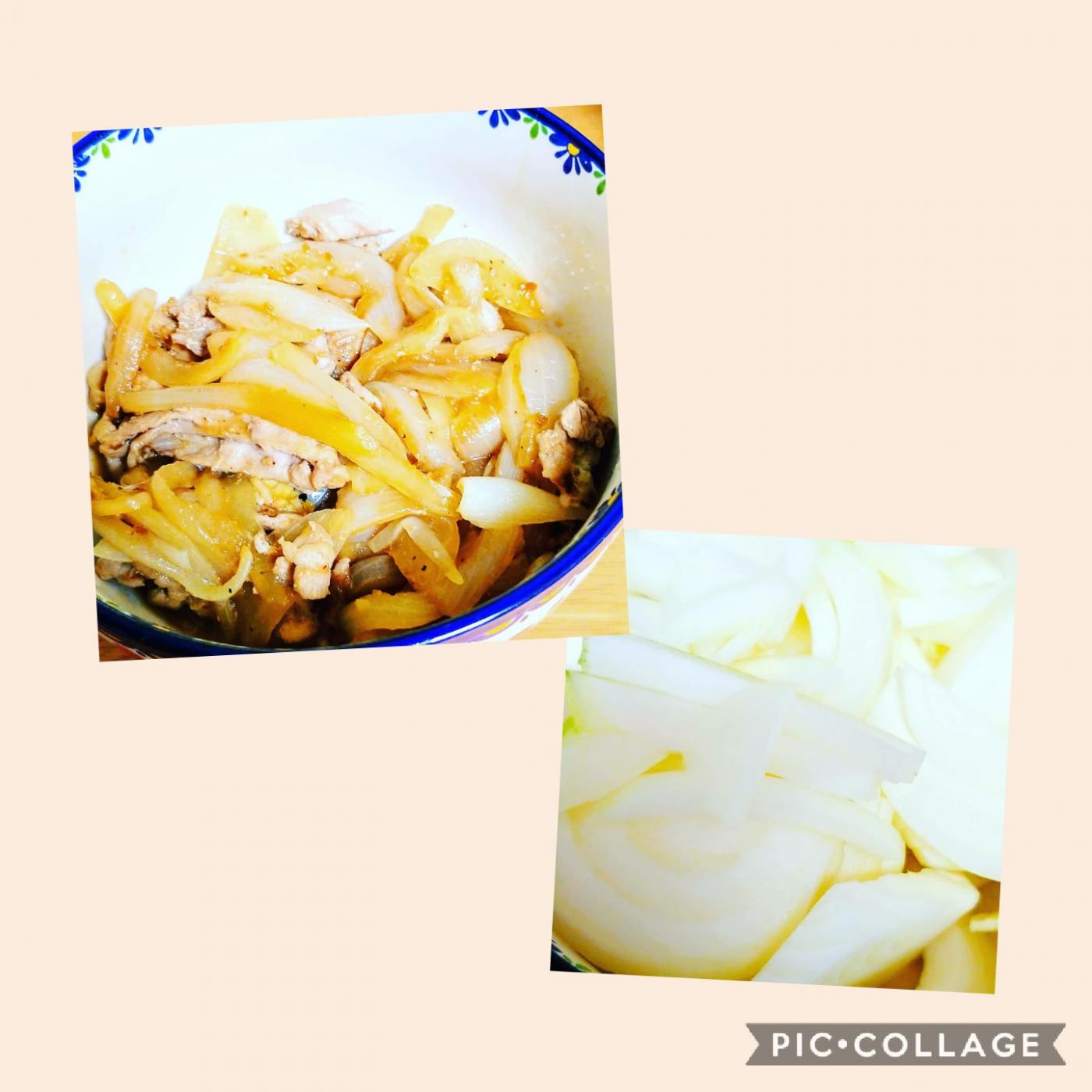 まずは、厚めにスライスしレンジに3分ほどかけ、豚肉と炒めて焼き肉のタレをかけました?