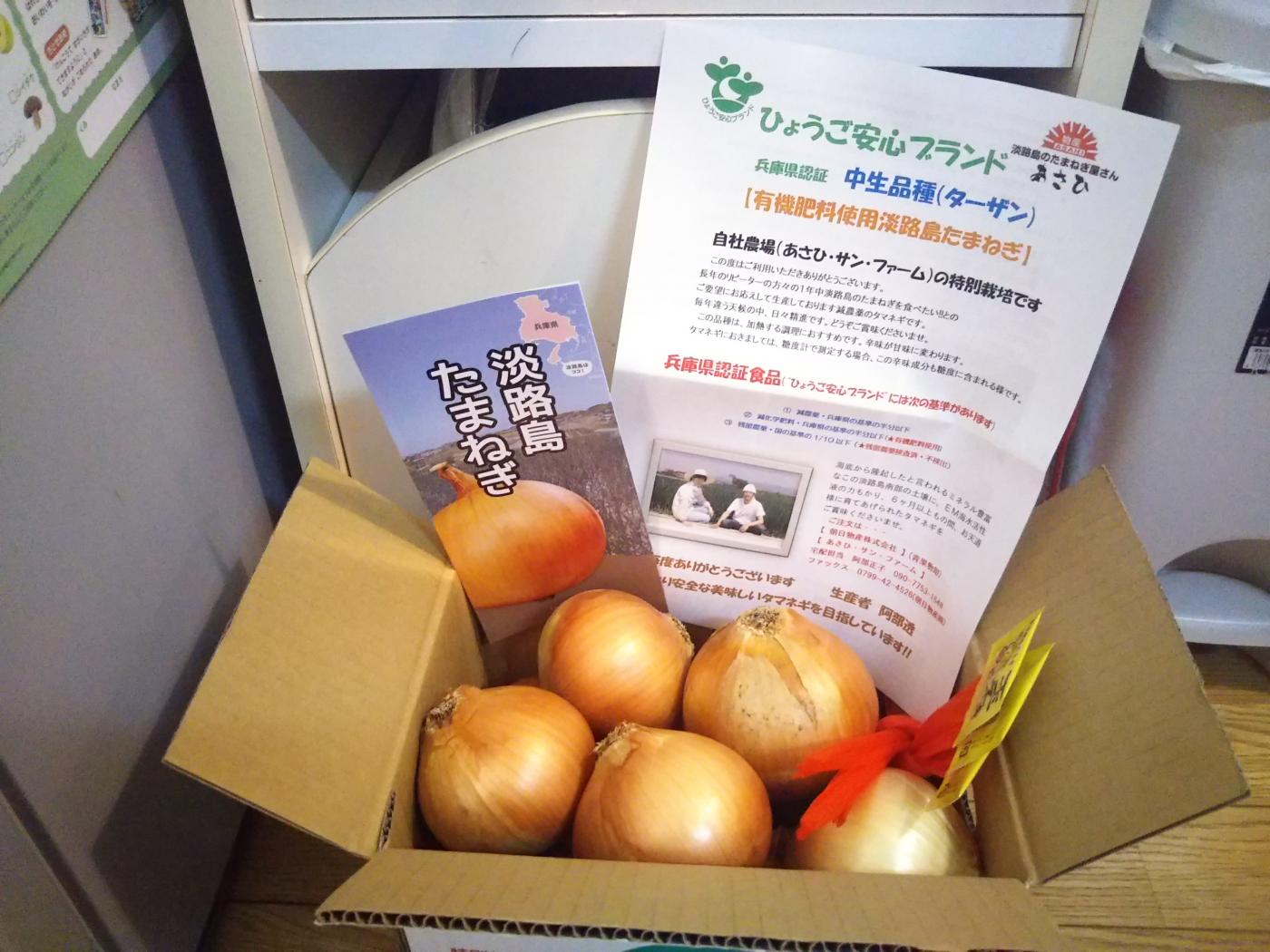 で、こちらは新玉ねぎではないけど☆減農薬☆減化学肥料☆有機肥料使用☆残留農薬が国の基準値の1/10という兵庫県認証食品なので、“美味しい”と“安全”の両方が叶う【あさひ・サン・ファーム の淡路島たまねぎの中生品種】