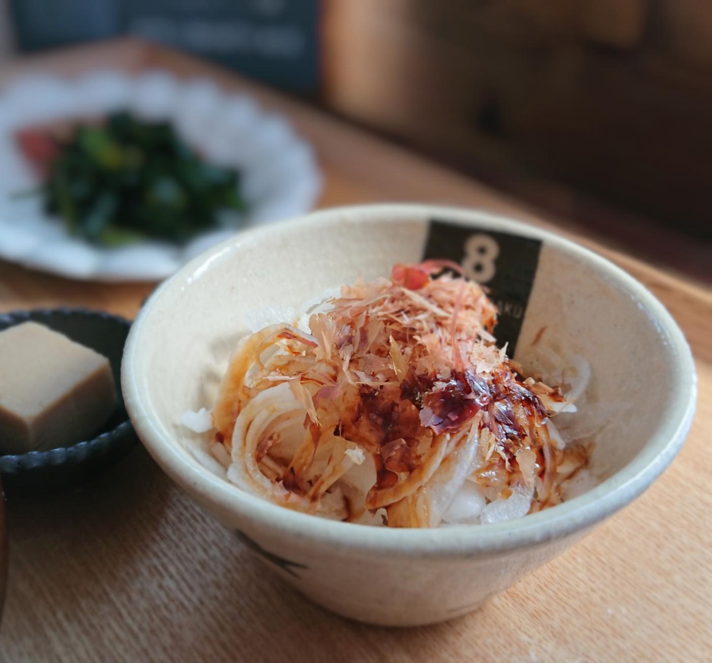 スライスして水にさらさず、冷蔵庫で一晩置いて、鰹節としょうゆをかけて食べました。
