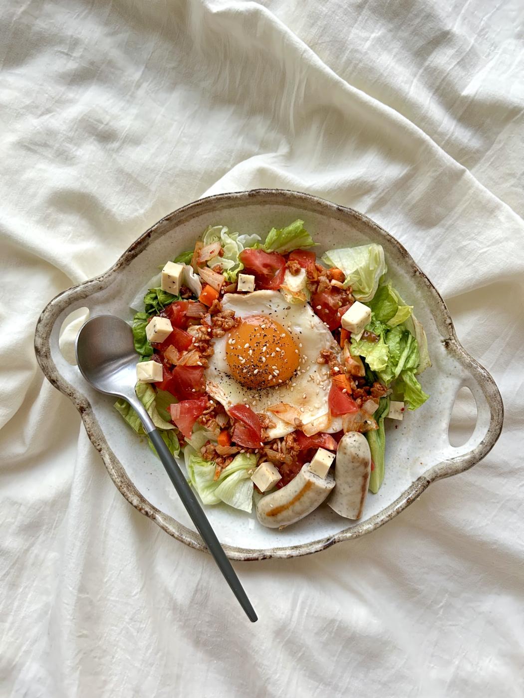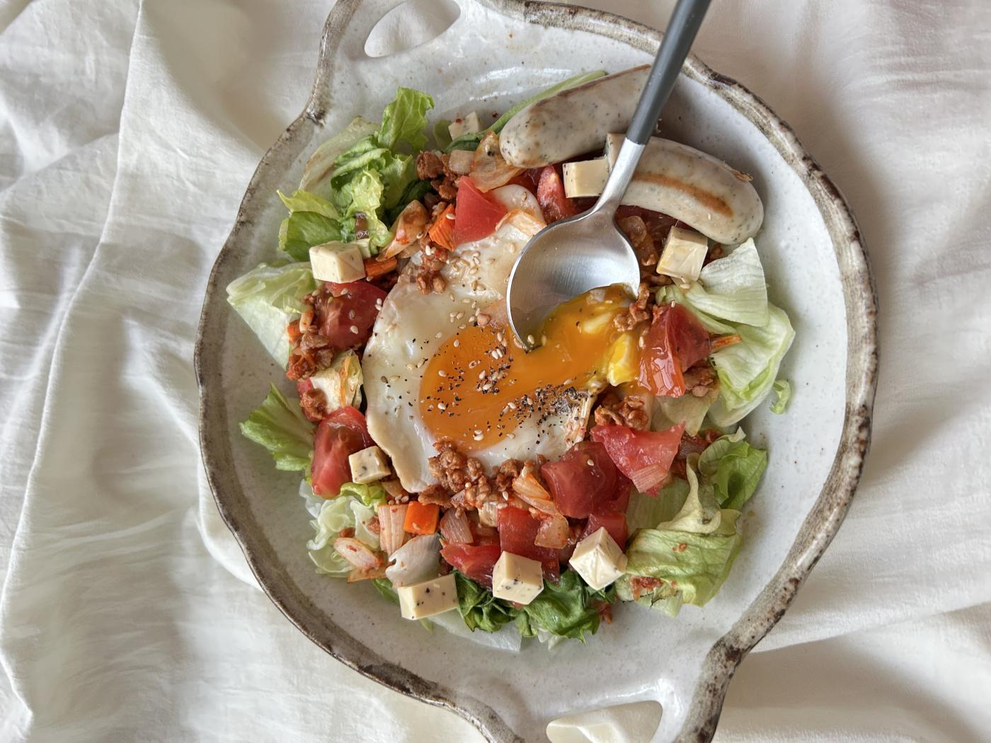 仕上げに目玉焼きをのせて、お好みでタバスコをかけたら完成!✨