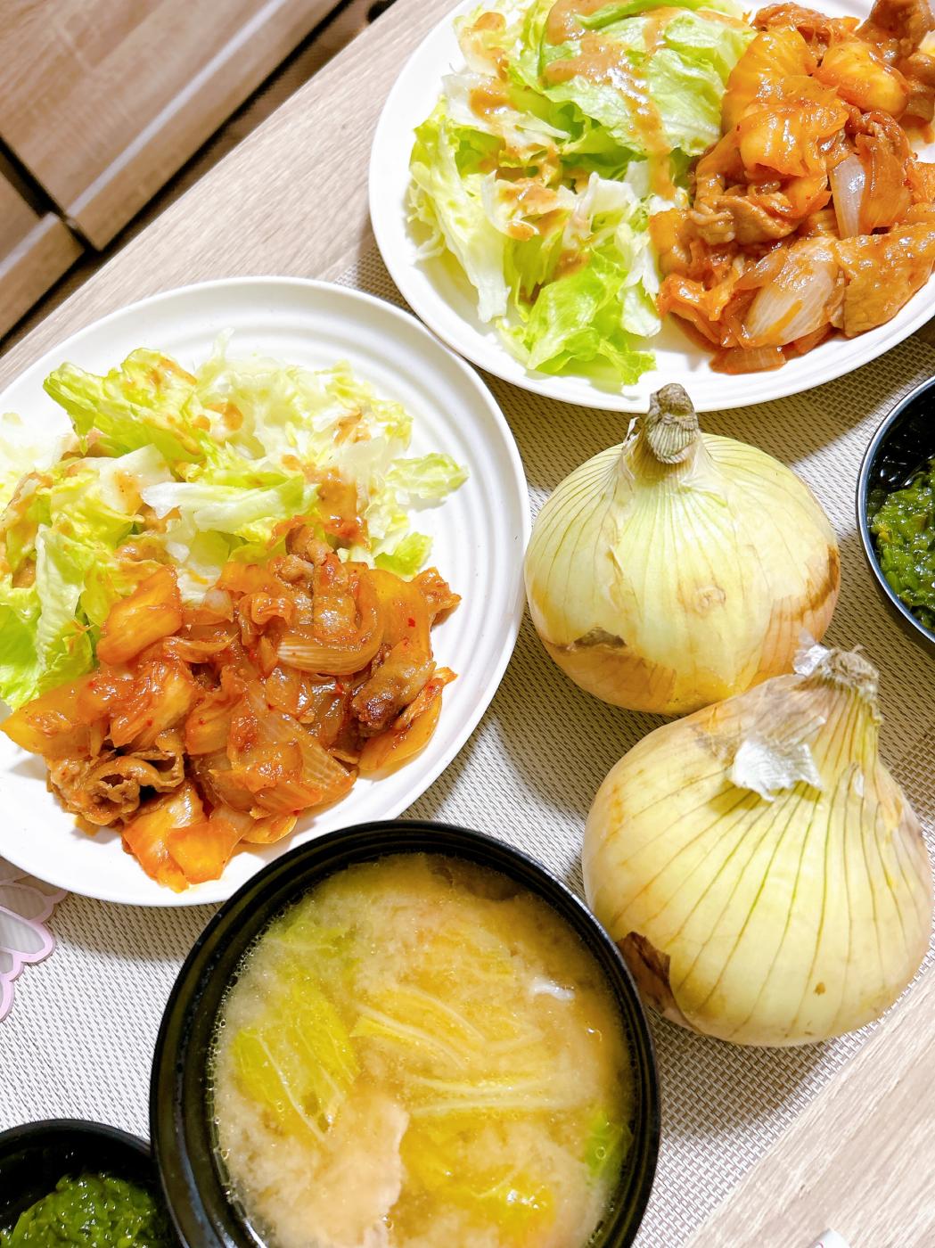 まずは玉ねぎたっぷり豚キムチ💕