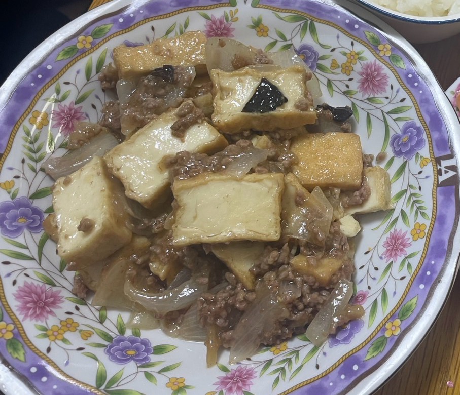 厚揚げとひき肉の炒め物は玉ねぎの甘みが、厚揚げとひき肉のシンプルな味付けに奥行きを加えてくれ、ご飯が進む一品になりました。