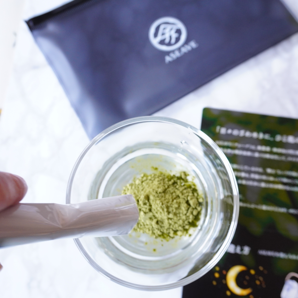 アシーブは、無農薬・無添加のオリーブ葉と明日葉を配合した粉末のナイトリセットドリンク。