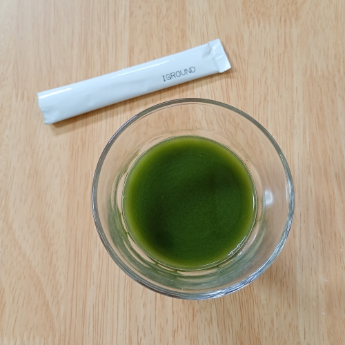 キメ細かいグリーンの粉末でダマにならずにサッと溶けます。