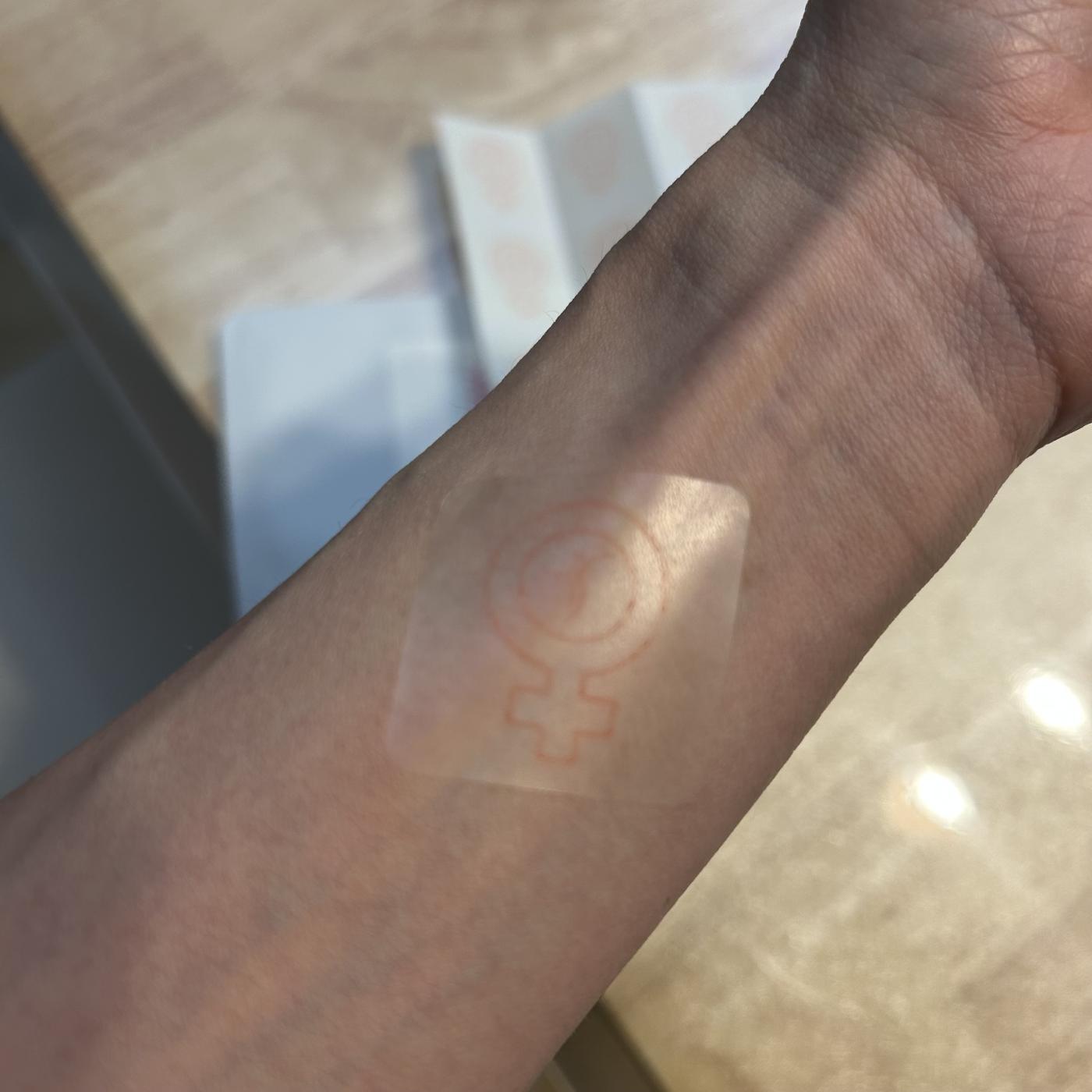▼swisscan® ハーブパッチ MENOPLUS 15日分/袋 ちょっと透明感のあるシール 実際に貼ってみたところ...