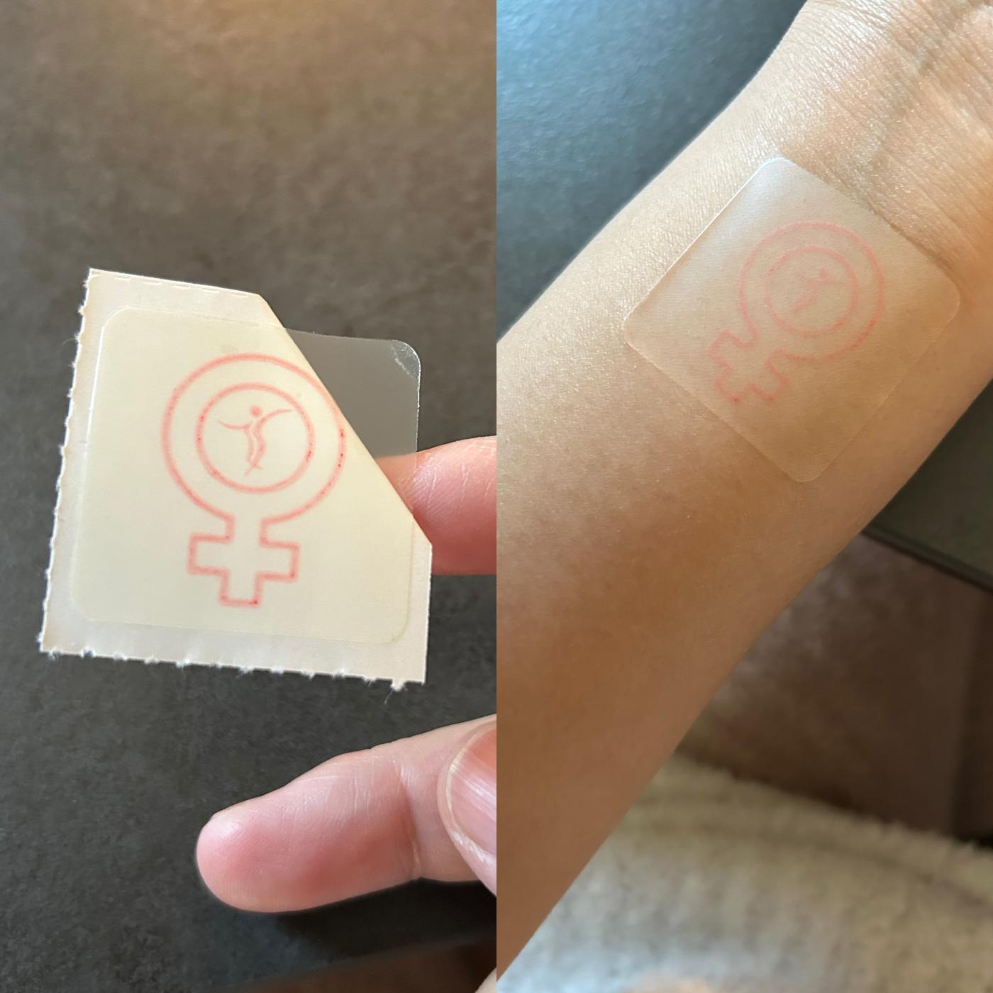 ▼swisscan® ハーブパッチ MENOPLUS 15日分/袋 ちょっと透明感のあるシール 実際に貼ってみたところ...