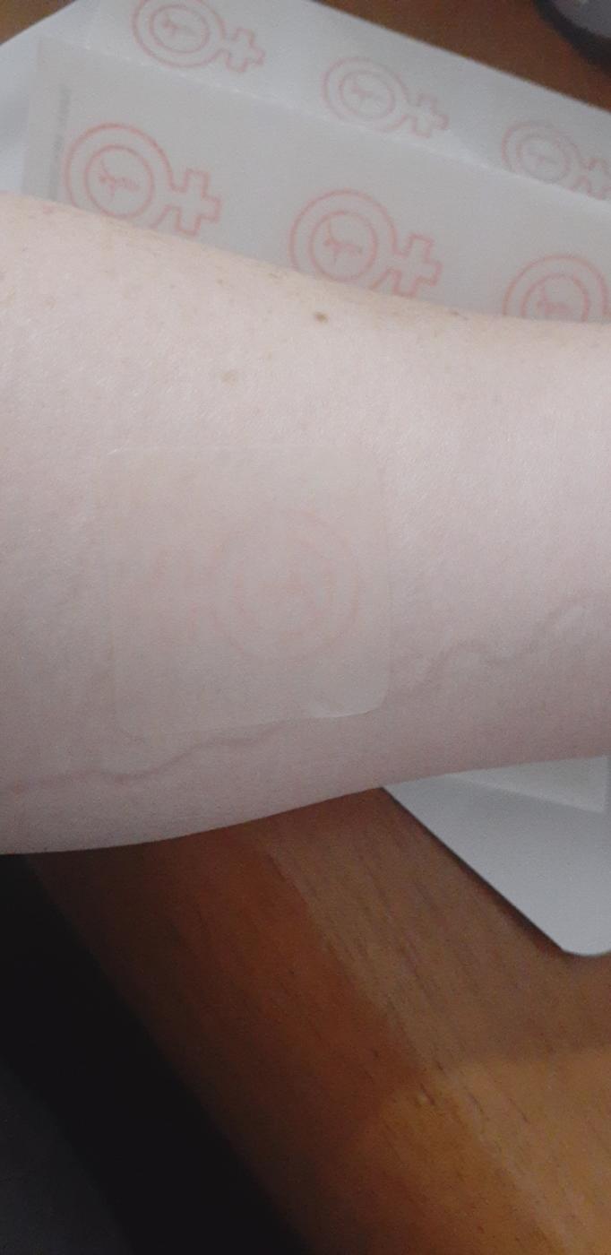 ▼swisscan® ハーブパッチ MENOPLUS 15日分/袋 ちょっと透明感のあるシール 実際に貼ってみたところ...