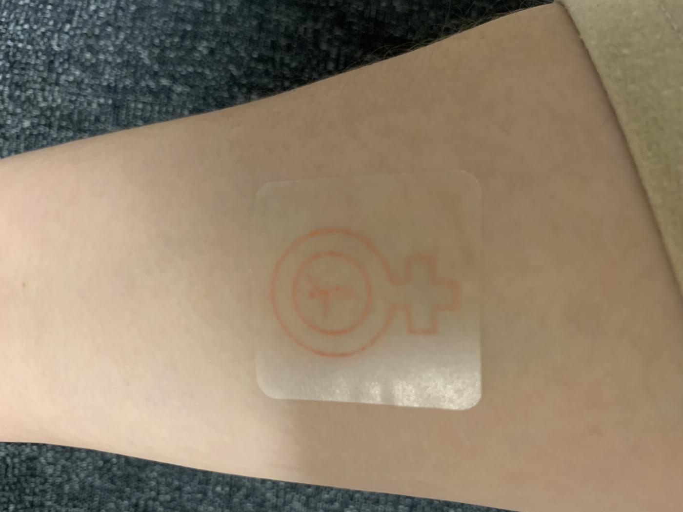 ▼swisscan® ハーブパッチ MENOPLUS 15日分/袋 ちょっと透明感のあるシール 実際に貼ってみたところ...