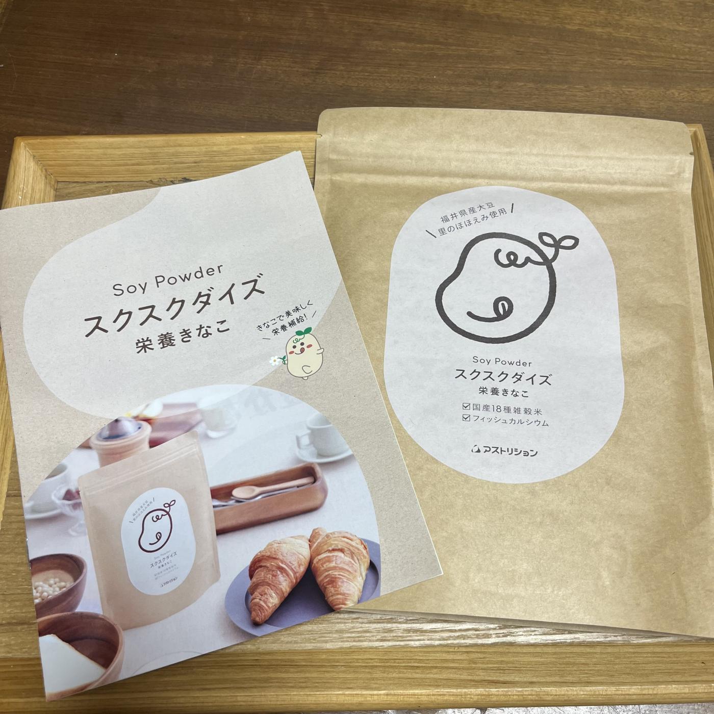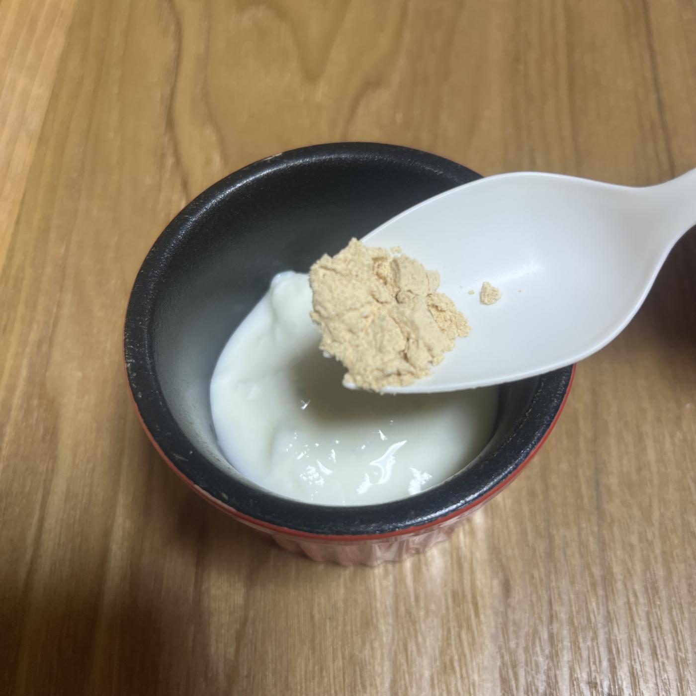 【スクスクダイズ】(栄養きなこ)を、ヨーグルトにかけていただきました。