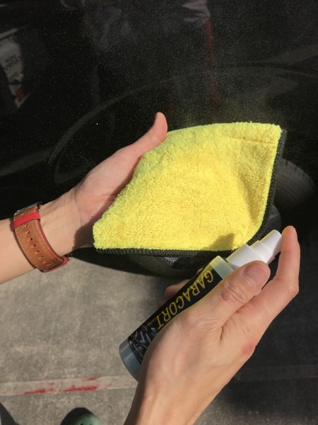 コーティング始めてなので、色々と面倒くさいのかなと思ってましたが、ガソリンスタンドで洗車して、吹き上げ、その後タオルにコーティング剤を染み込ませて塗るだけと超カンタン!