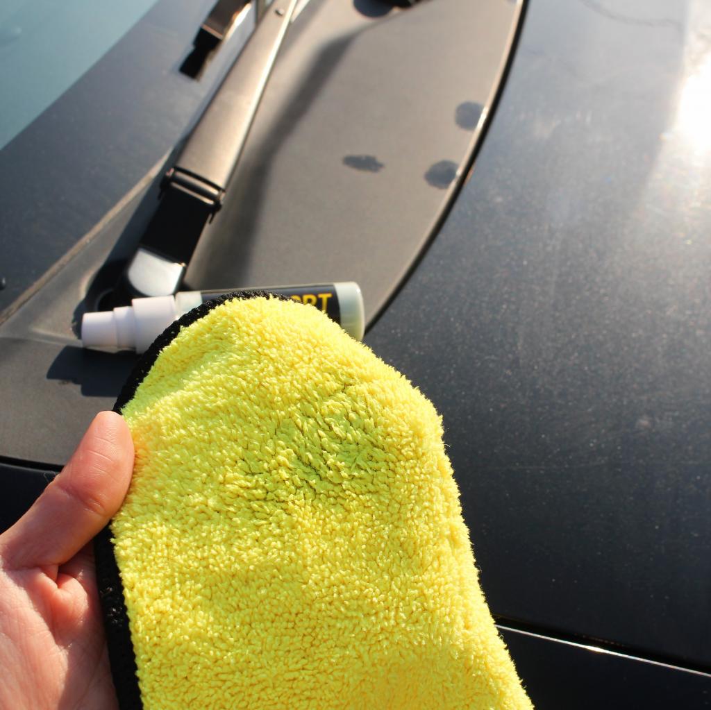 黄色に黒の縁どりのマイクロファイバークロスとガラコートのセットです。 使い方は、とっても簡単! 洗...