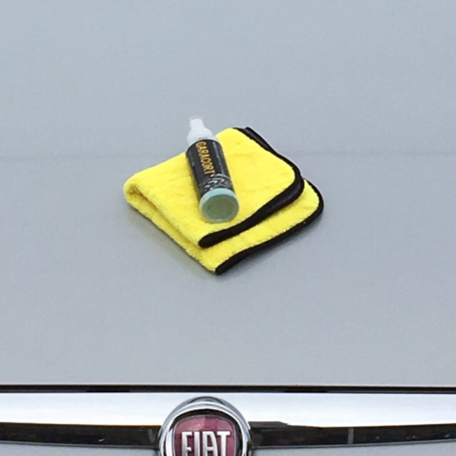 ボトルを振って、マイクロファイバーに含ませてボディに塗り込んで。